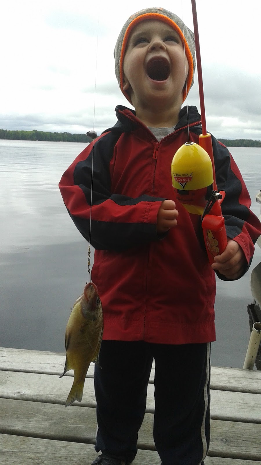 It was a fun filled, relaxing weekend, filled with many first things. One thing in particular that my son enjoyed, as did the rest of us was fishing. Sure, he has seen fish, in a tank, but never caught one. The excitement and joy on his face as he caught that first fish was priceless. All weekend he kept asking to fish and the following weeks he would turn just about anything into a fishing pole.