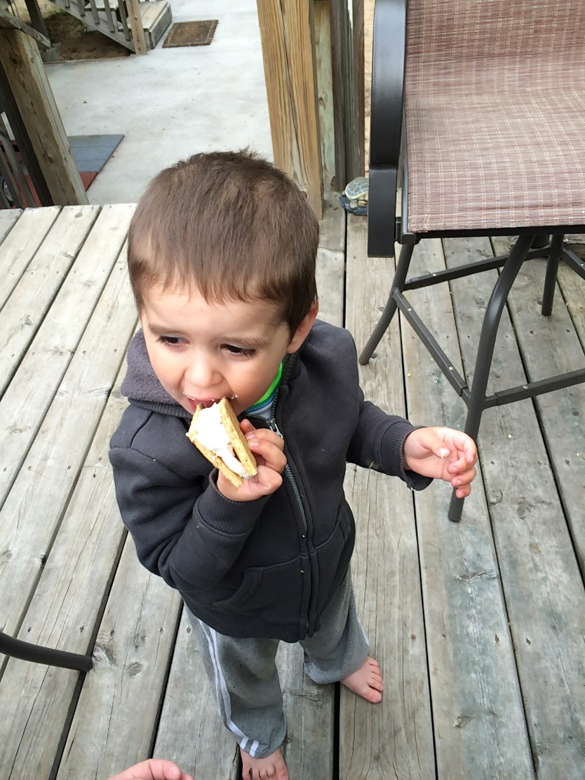 While visiting my parents, they asked if my son would enjoy a s\’more. My response, I don\’t know, as he hadn\’t had one, let alone a marshmallow yet. He enjoyed it, sort of. Not as much as I thought, but it was also shortly after dinner. And at the point he had a s\’more made for him, he had already eaten a plain marshmallow.