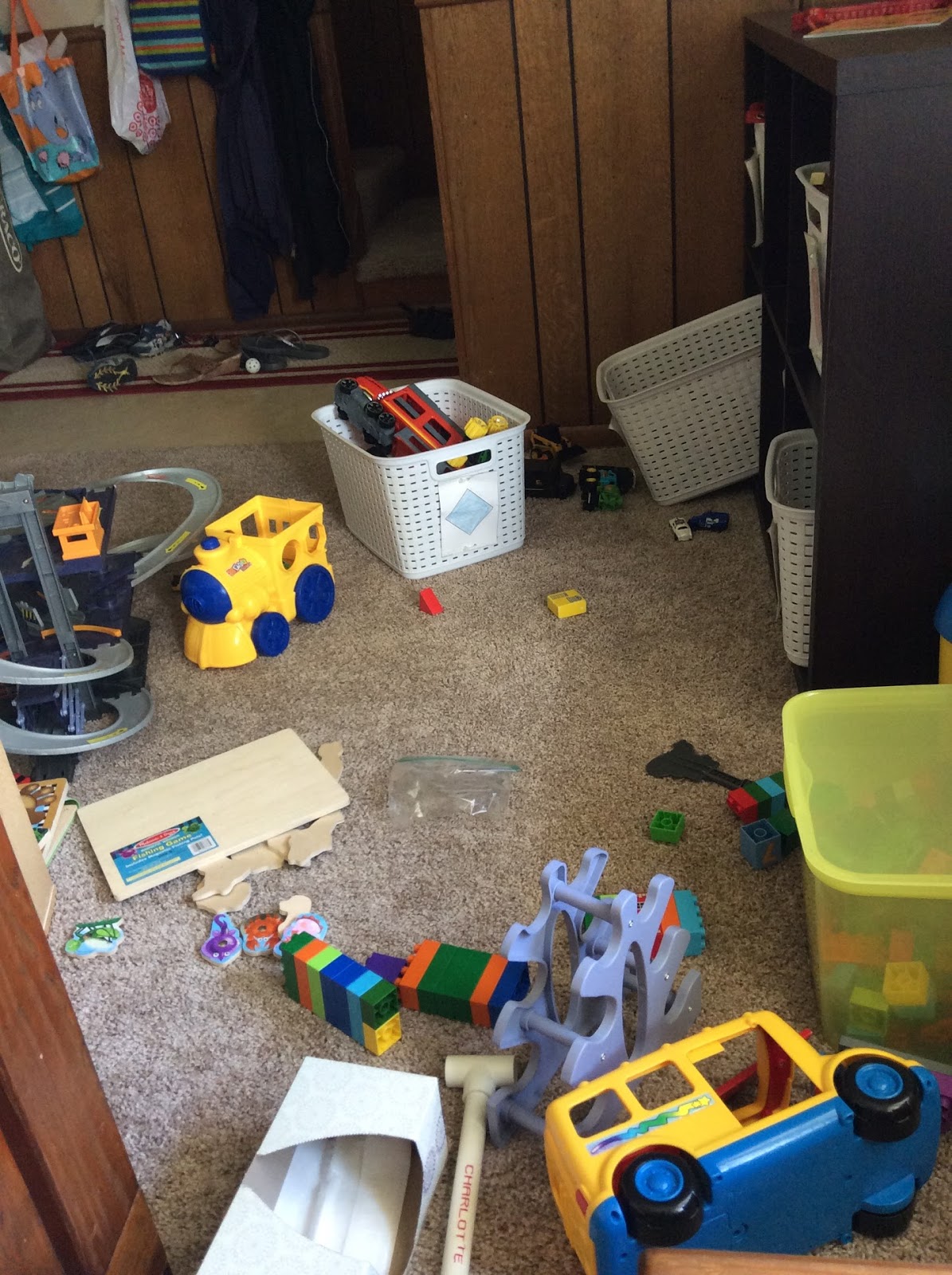 I sneak in quick bathroom wipe downs when I can, like while waiting for the shower to be ready or while my oldest brushes his teeth or while I wait to make sure my youngest has truly fallen asleep. It\’s been an expectation that toys are cleaned up at the end of the day before bed. It is something that started with my oldest when he was little and didn\’t understand the concept of picking them up. With time, we can now tell him to clean them up and it gets done. That\’s not to say that sometimes, toys are left out. Like after he has been working hard to build with Legos or we\’ve created a really cool train track (which usually stay out for a few days). But overall, it\’s picked up most of the time.