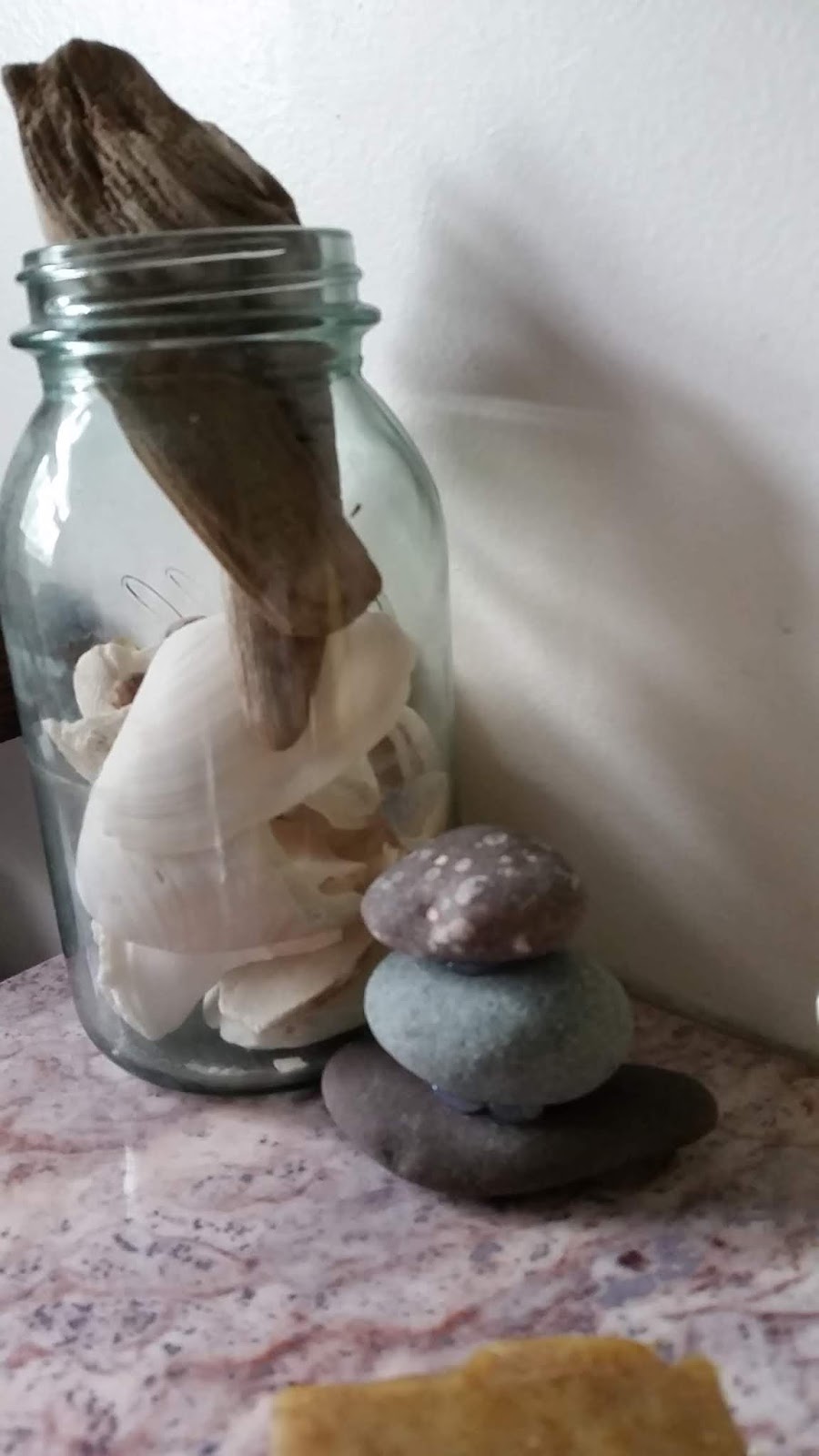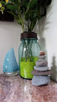 Both kids have jars from a trip last Summer of rocks they collected along Lake Huron. I have rocks set out near the kitchen sink and in my room that were given as gifts to me from oldest.