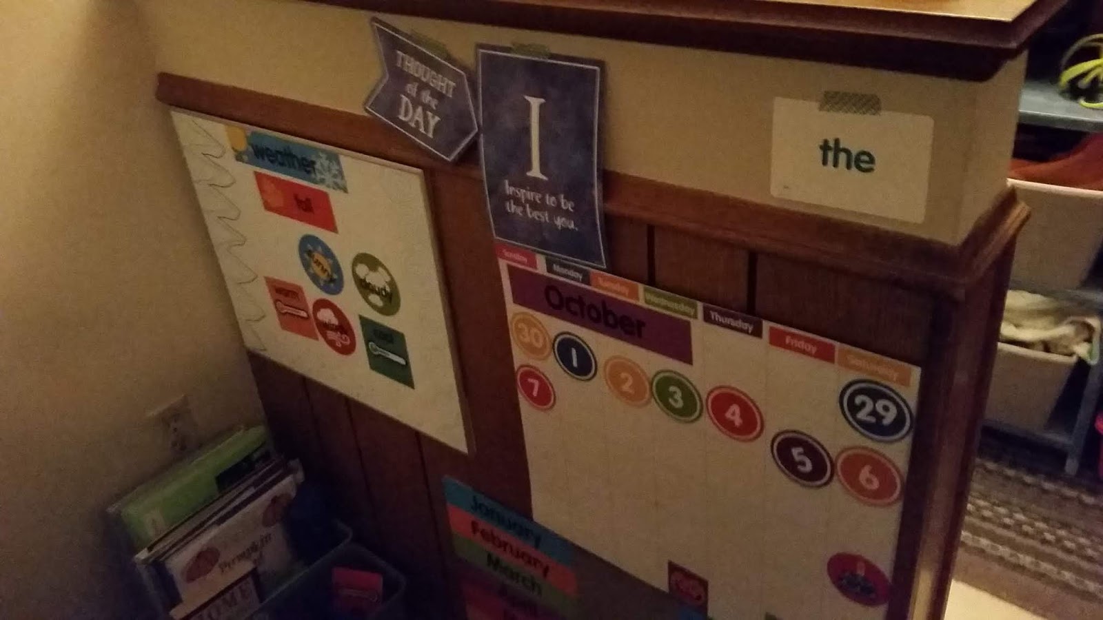 Each day we do calendar and weather, as well as we have a thought of the day card that also pairs with the letter of the week. This week our letter is A and the thought of the day, which we use for the whole week, is always be kind. There is also a sight word posted near the calendar to help learn specific sight words.