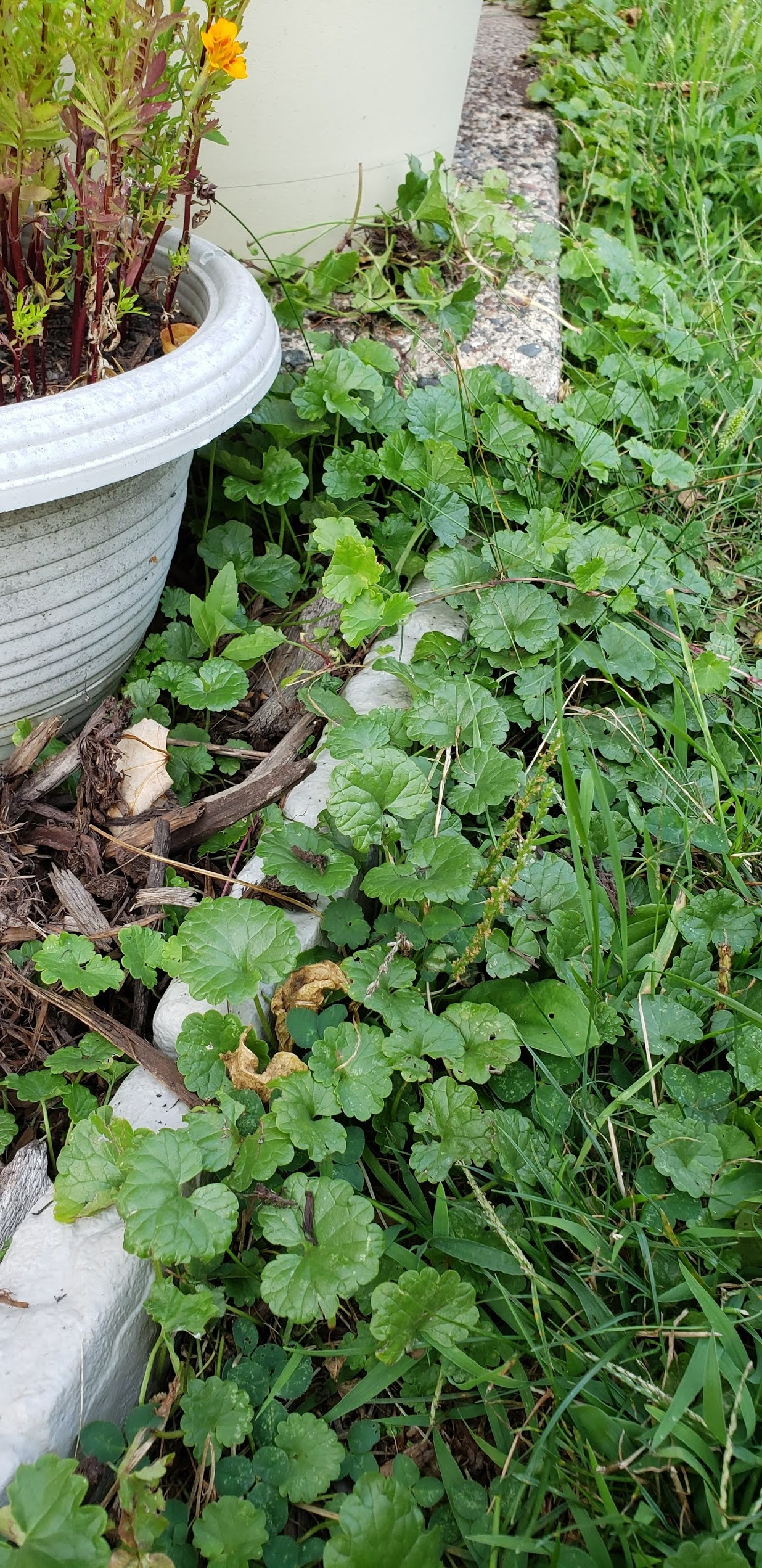 If you\’ve never had creeping charlie in your yard, well like the name says, it creeps and spreads rather quickly. We had it in our garden, still do, but the flower plants have taken over more of the space and are winning the battle.